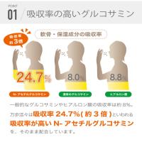 原材料名 | N-アセチルグルコサミン(カニ・エビ)、鶏軟骨抽出物(鶏・ゼラチン)、メチルスルフォニルメタン、タラノキエキス、還元麦芽糖水飴、クレアチン、レモンバーベナエキス、セルロース、酵母細胞壁(大豆)、ステアリン酸カルシウム、二酸化ケイ素、グリセリン、ビタミンB6、増粘剤(ヴァーガム) |