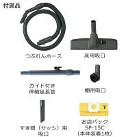 付属品 | ・つぶれんホース1.7m ・床用吸口D-321 ・ガイド付き伸縮延長管 ・棚用吸口U32 ・すき間(サッシ)用吸口C41 ・お店パックSP-15C(本体装着1) |