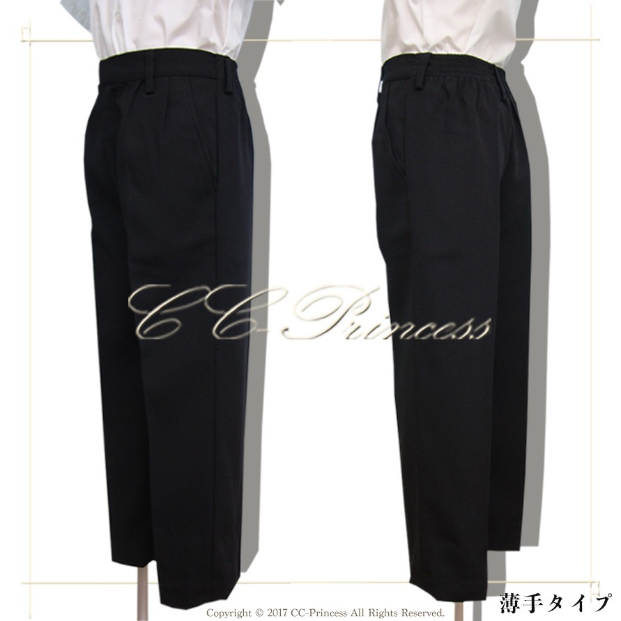 ☆フォーマルな黒のロングパンツ ☆前部分は≪ファスナー仕様≫、ベルト通し付、ウェストの後部分は≪ゴム入りの仕様≫です。 ☆やや薄手仕様(春〜秋シーズン向き)となっております。