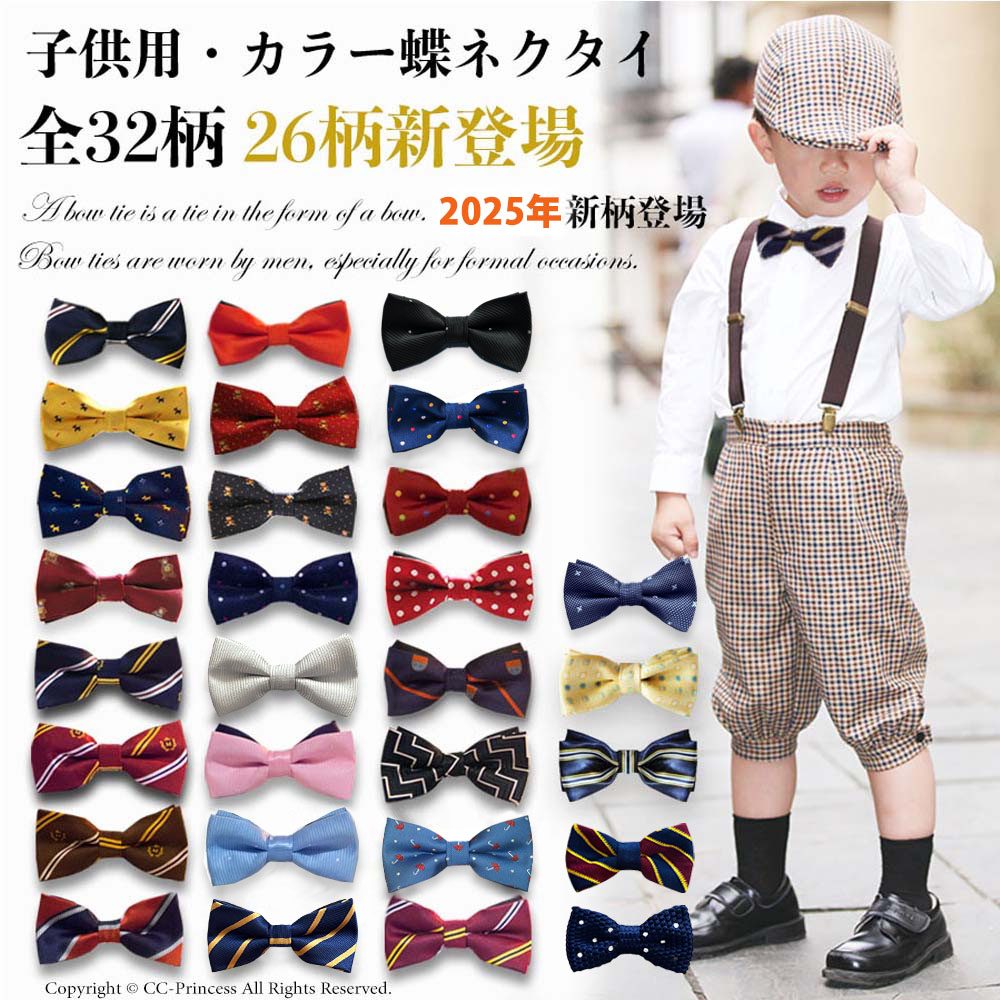 【2025年新カラー】『子供用・カラー蝶ネクタイ(TIE-007)(80-160サイズ用)』 ネクタイ、 蝶タイ、 男の子、 フォーマル