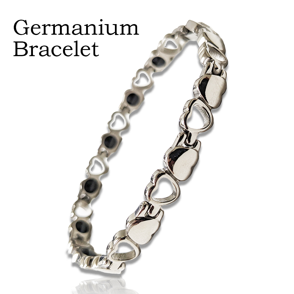 訳あり 女性用チタン製ハート型ゲルマニウムブレスレット11粒 即納 ゲルマニウムアクセサリー 健康 シルバーカラー 定形外郵便発送 送料無料