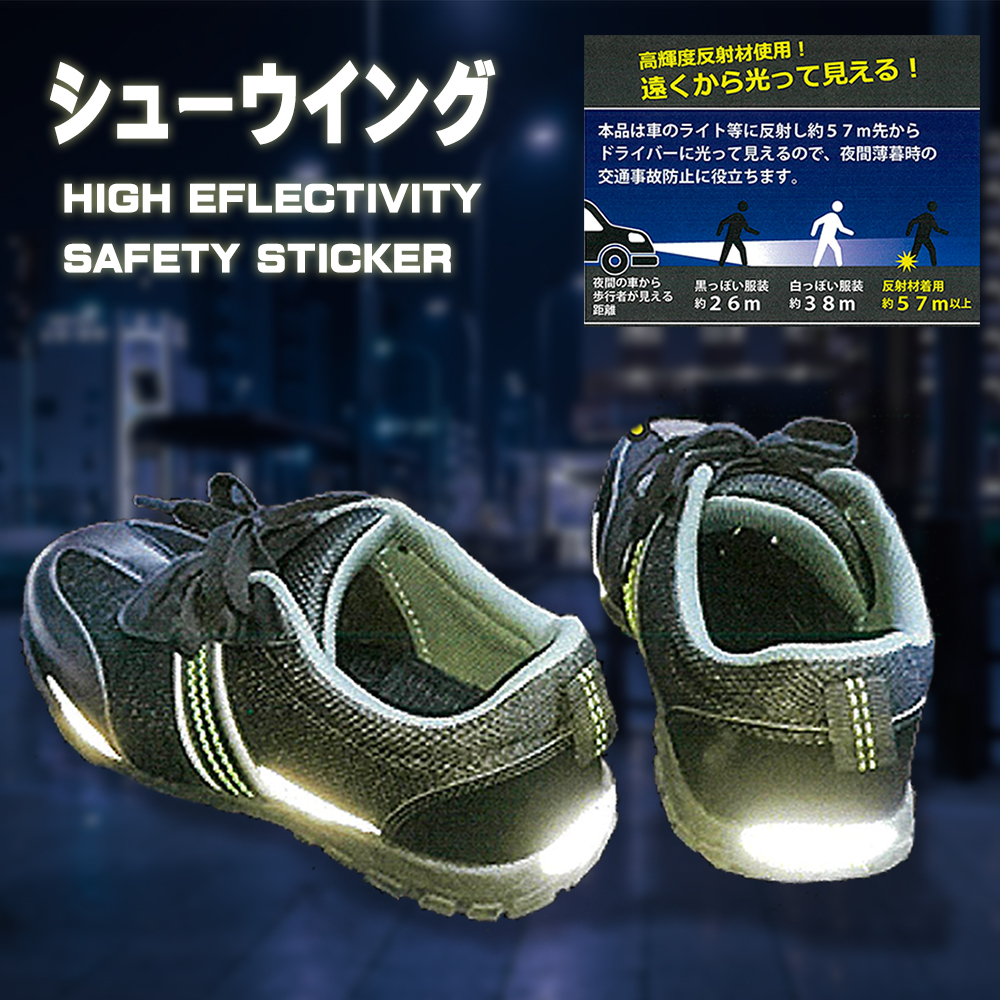 本製品は、業務用の安全ベストにも使われる**「高輝度反射材」を採用。貼るだけで車のライトを強力に反射し、一般的な白い服(約38m)を大きく上回る約57m先**からあなたの存在をくっきり浮かび上がらせます。