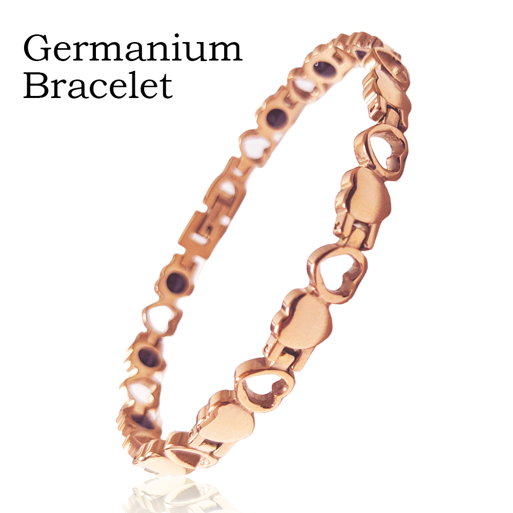 訳あり 女性用チタン製ハート型ゲルマニウムブレスレット11粒 即納 スポーツ 健康 ピンクゴールドメッキコーティング ローズゴールド 送料無料