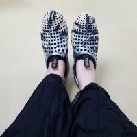 独自の穴あきデザイン、インナーもメッシュ素材で、海や川で濡れても洗えてすぐ乾きます。