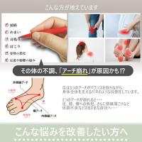 体の不調の原因となる「アーチ崩れ」も、このインソールでは足裏のアーチを 正しい位置にキープし、バランスを整えることで足のトラブルを予防し、体の不調を軽減します。