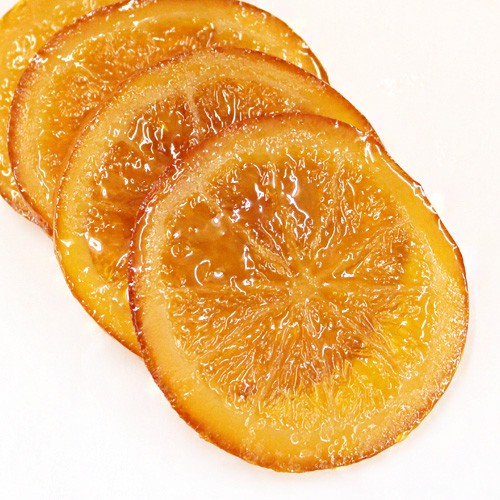 ヴァレンシア産の良質なオレンジを皮付きのままスライスし、特殊釜でじっくり煮上げた製品です。オレンジスライスの琥珀色に透き通った美しさとビター感をお楽しみください。ショコラ掛けはもちろん、焼き菓子などさまざまな用途にご使用いただけます。