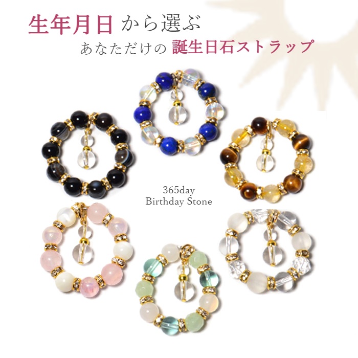 パワーストーン ストラップ 生年月日 鑑定 誕生石 幸運 ※6種類から選べる ※解説カード付 約6mm玉 天然石
