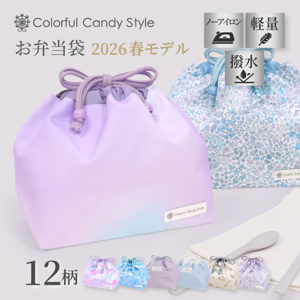 巾着 中 マチ有りお弁当袋(ネームタグ付き)撥水ノーアイロン 人気ラインナップ 女の子柄