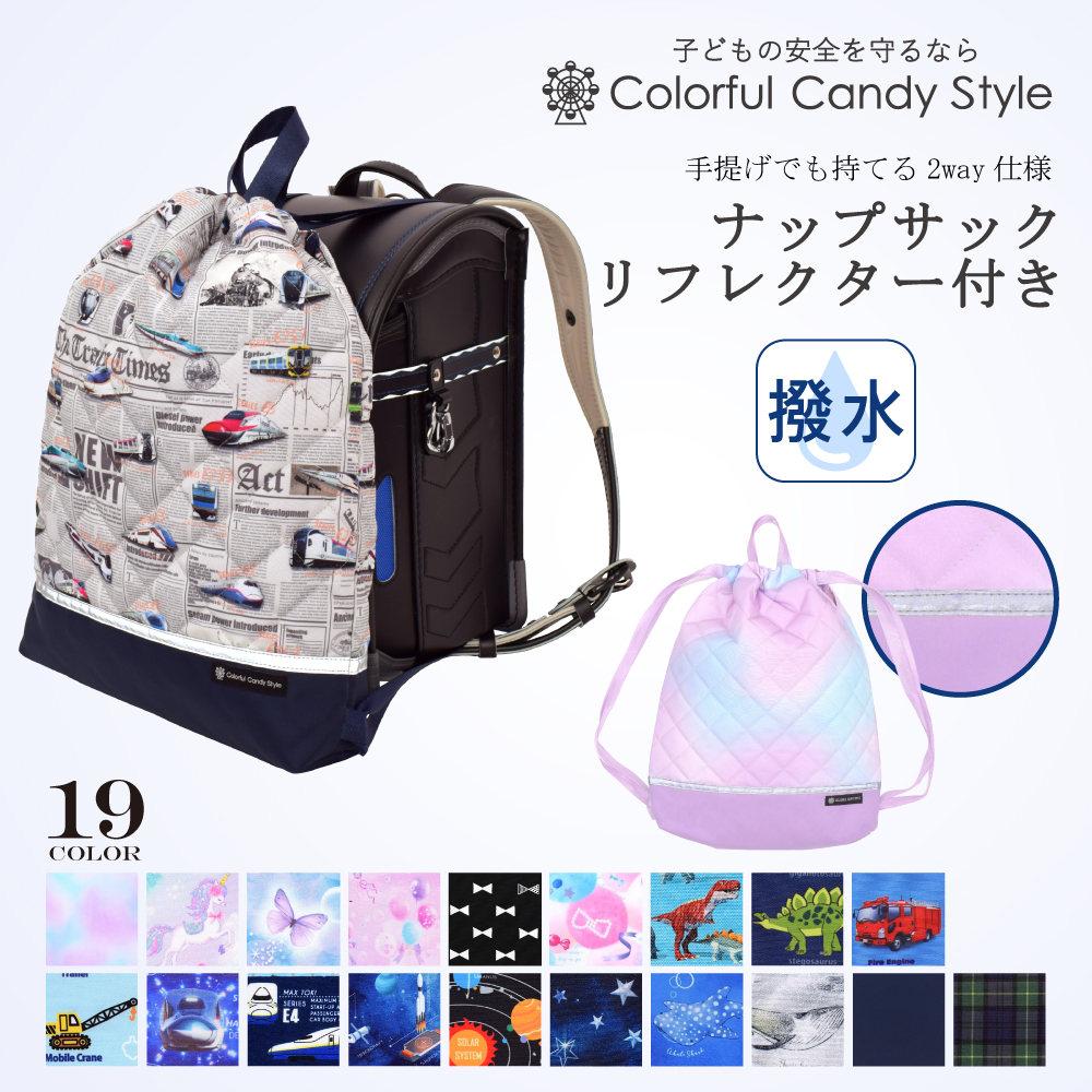 ナップサック キルティング マチ付き リフレクター付き 撥水ノーアイロン