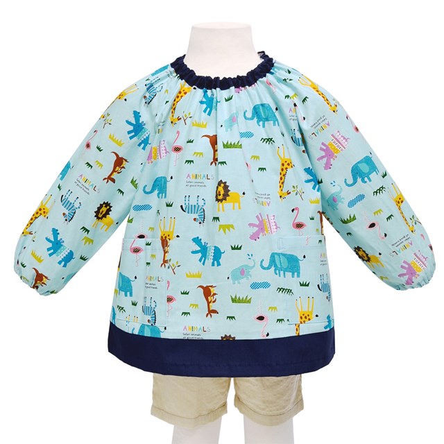 スモック サバンナ横断どうぶつ大行進(ライトブルー)