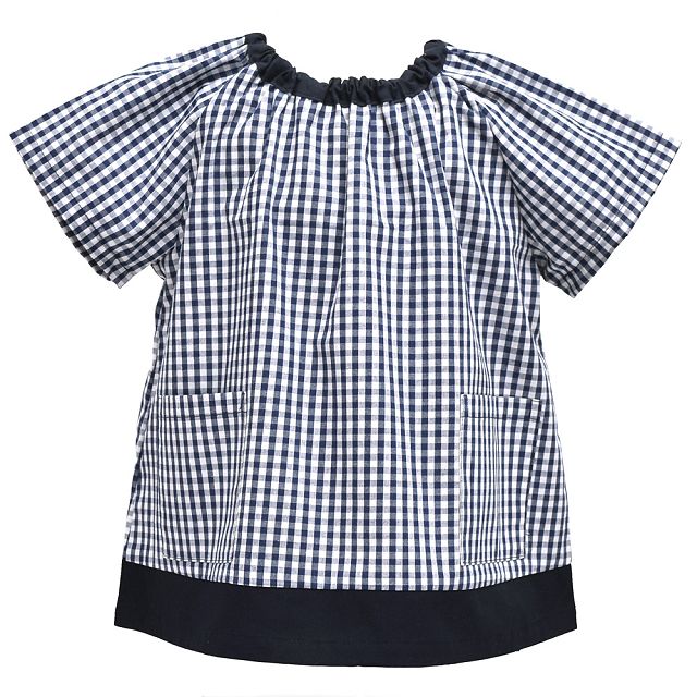 半袖スモック(100-110cm) チェック大・紺