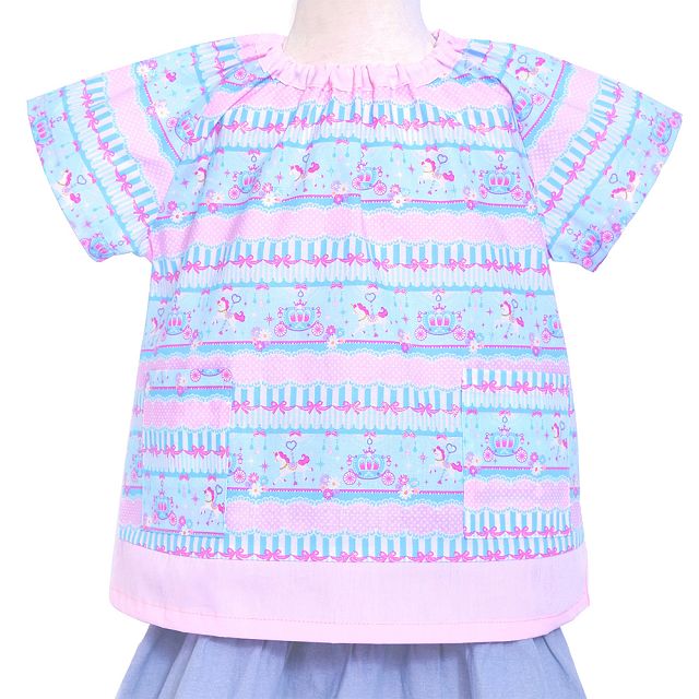 半袖スモック レースチュールとメリーゴーランド(ライトブルー)