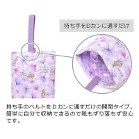 4.持ち手ベルトを通せるDカン付き(ネームタグ付き)持ち手をDカンに通して袋口を締める簡単開閉タイプ。子どもが自分で収納でき、靴もずり落ちません。持ち手は、小さなお子様の手にも持ちやすいテープ仕様。プライバシーに配慮し、ネームタグは内側に付いております。