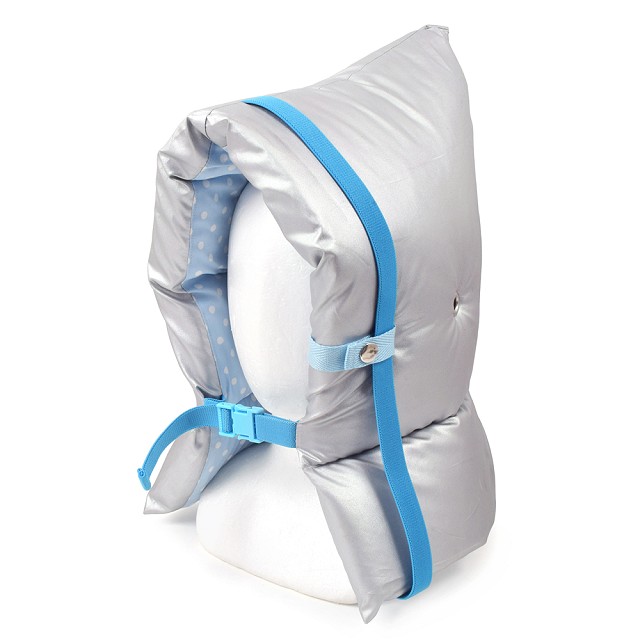 日本防炎協会合格認定素材使用 防災頭巾(椅子固定ゴム付き) 防炎シルバータイプ(水玉・ライトブルー)
