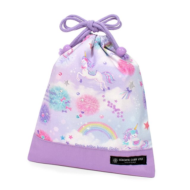 巾着 中 マチ無し給食袋(ネームタグ付き) ユニコーンファンタジー