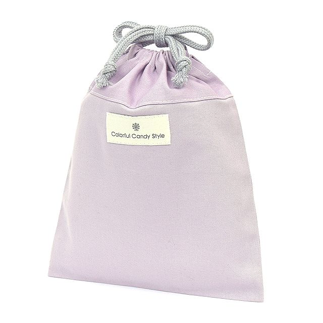 巾着 中 マチ無し給食袋(ネームタグ付き) くすみ無地 くすみラベンダー