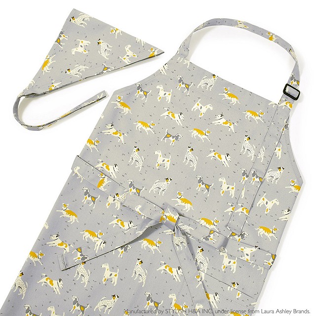 LAURA ASHLEY エプロン(150〜160)三角巾付き DOGS