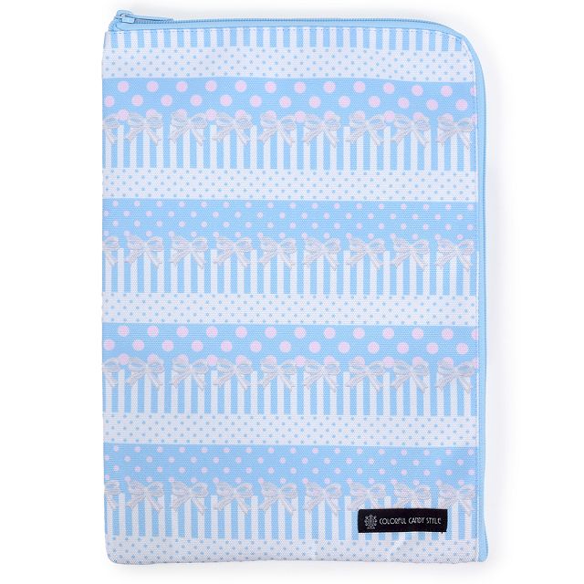 連絡袋(A4サイズ) 撥水・軽量タイプ ポルカドットとレースリボンに魅せられて(ライトブルー)
