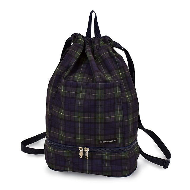 プールバッグ (ナップサックタイプ) 撥水・軽量タイプ タータンチェック・ダークグリーン
