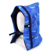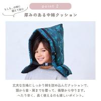 分厚い中綿クッションが子どもの首・肩まで覆って保護。頭を衝撃からしっかりと守ります。