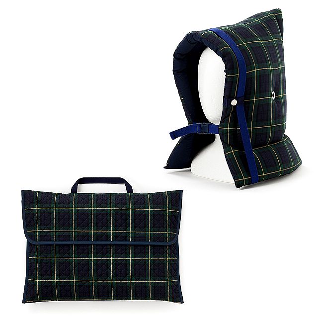入園入学シリーズ 防災頭巾・カバー2点セット キルティング タータンチェック・ダークグリーン