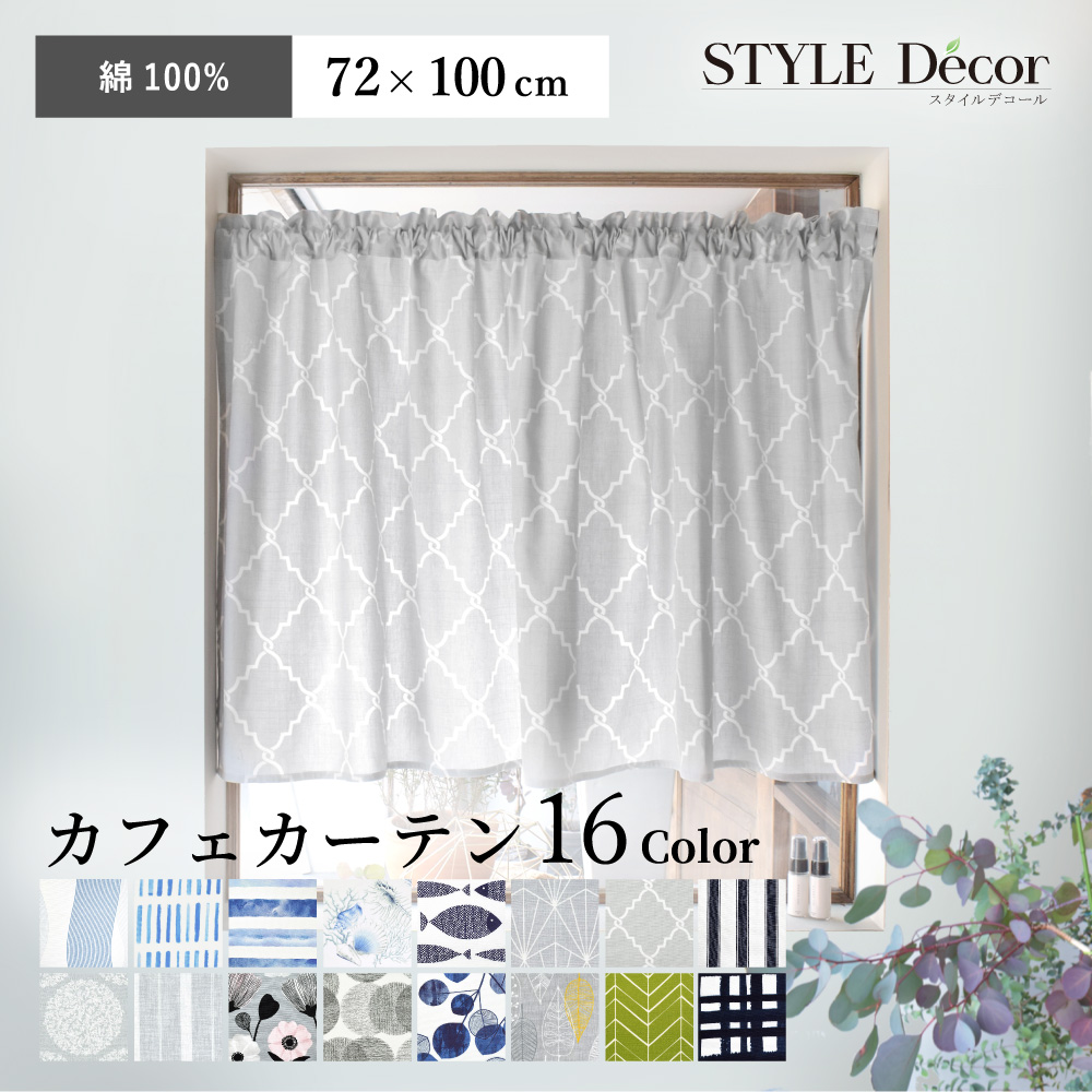 カフェカーテン 綿100% スタンダード 72cm×100cm シンプル おしゃれ 小窓 カーテン 小窓用 キッチン 窓 目隠し ミニカーテン ロング かわいい