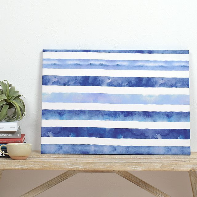 深みと独特なムラ感のある手書きのような青い線は、遠くに見る水平線にも似たイメージ。濃淡のバランスが心地よい、洗練された粋なボーダー柄です。
