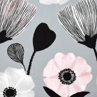 北欧のヴィンテージ雑貨を思わせる、グレイッシュなアネモネ柄。ひとさじ加えた淡いピンクが大人可愛いい、スタイリッシュ &スイートなフラワー・パターン。