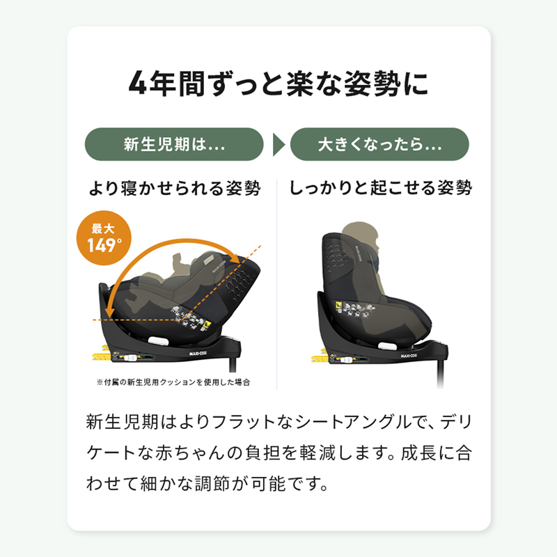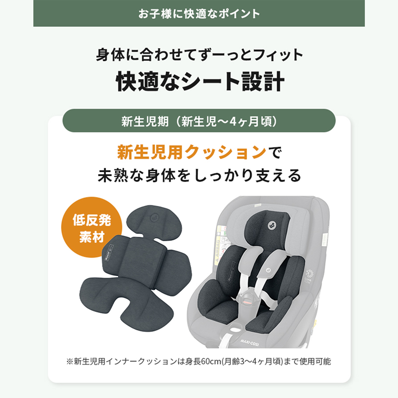 新生児から4歳のお子様が快適に乗れる形とサイズのシート。