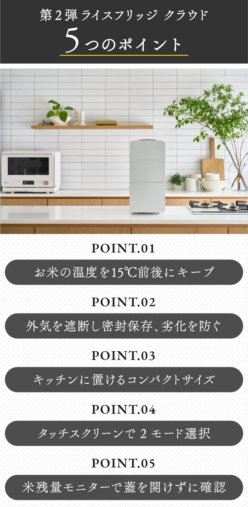 ワンタッチでできる簡単操作で、いつでも新鮮でおいしいお米を食べることができます。