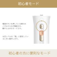 口腔洗浄器が初めてという方に安心の、初心者モードを搭載。水の飛び散りを防ぎストレスなくケアが出来ます。