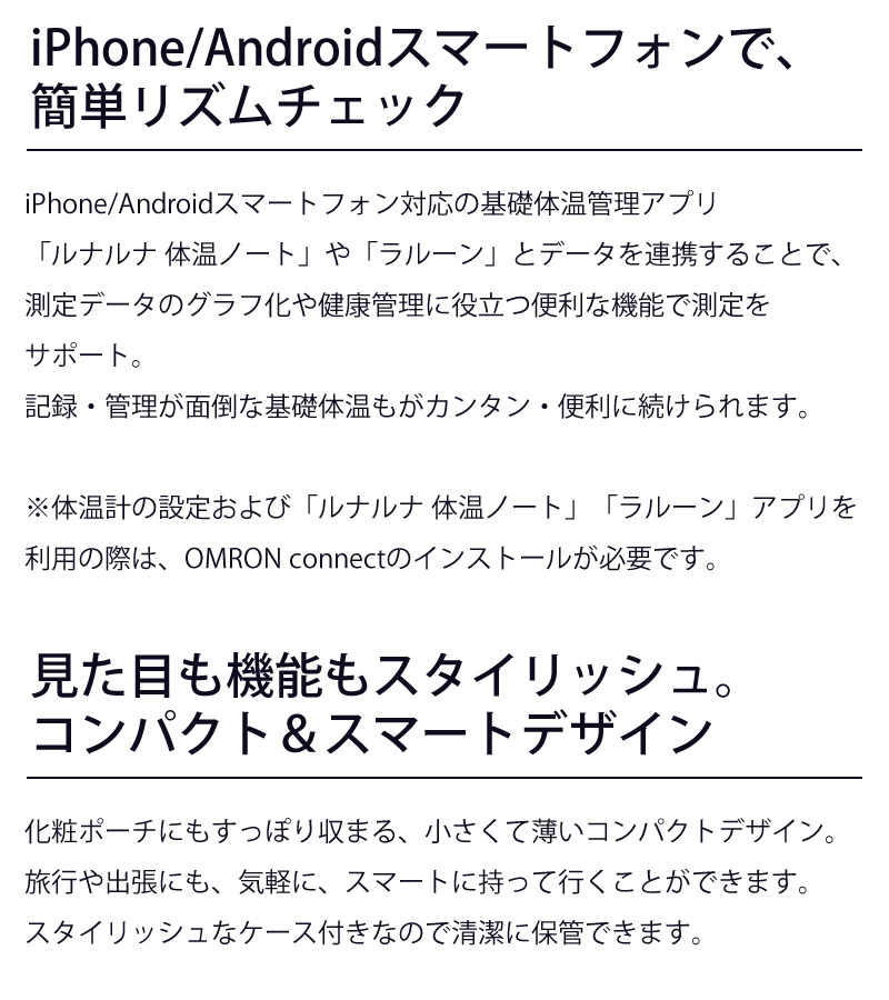 iPhone/Androidスマートフォンで、体温管理やリズム管理も可能
