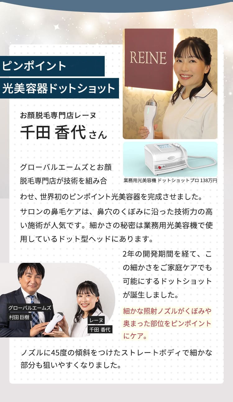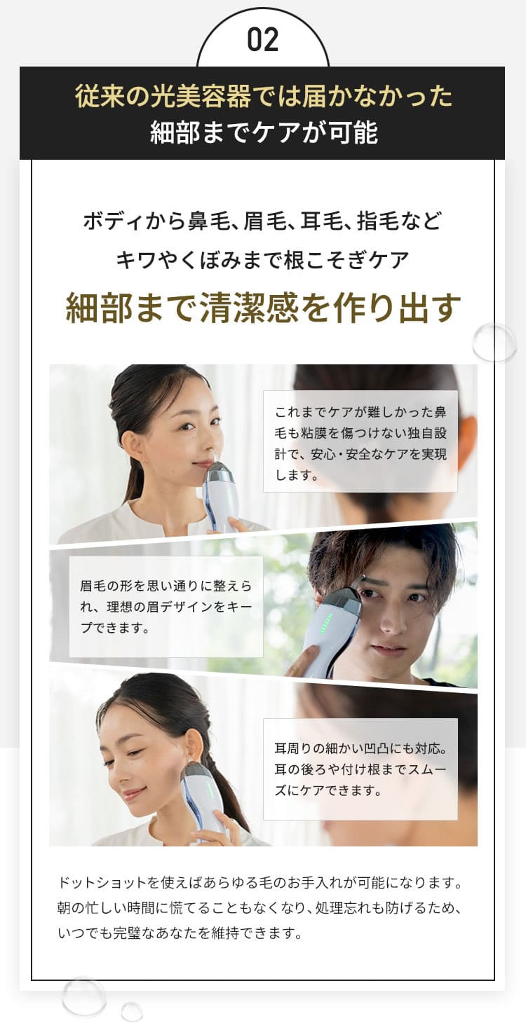 だからこそ、必要な個所を的確に狙える持ちやすさ、お肌にフィットする約45度の照射面など、製品の形状にこだわりました。