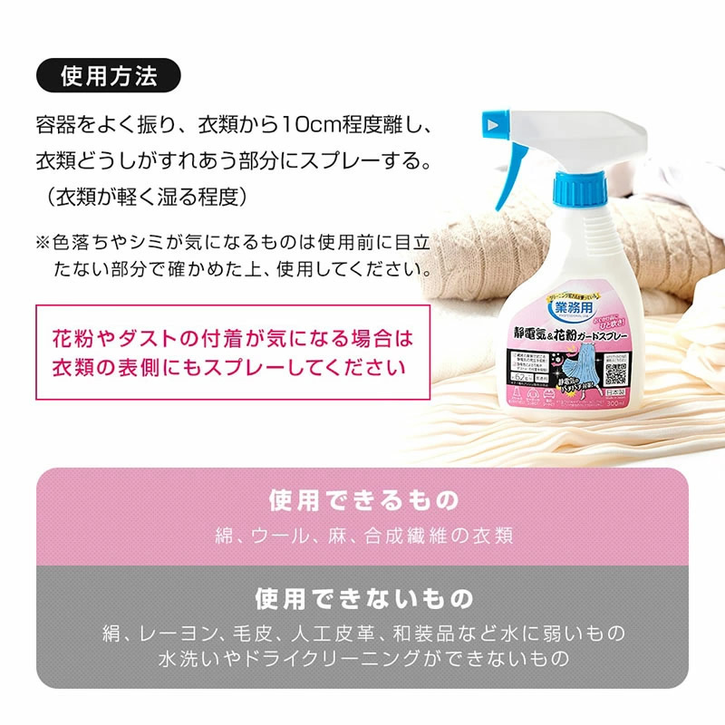 3.花粉やダストの付着が気になる場合は、衣類の表側にもスプレーする。
