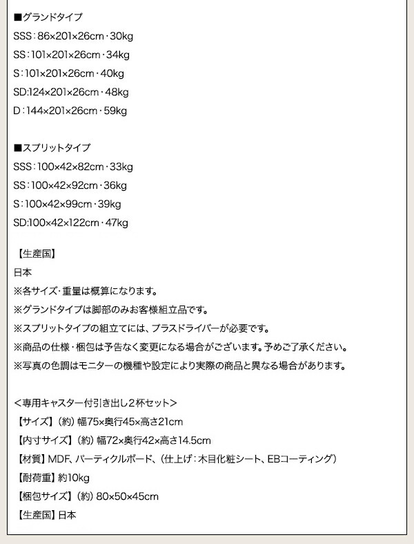 日本製ポケットコイルマットレスベッド 専用別売品(キャスター付き引き出し2杯セット)