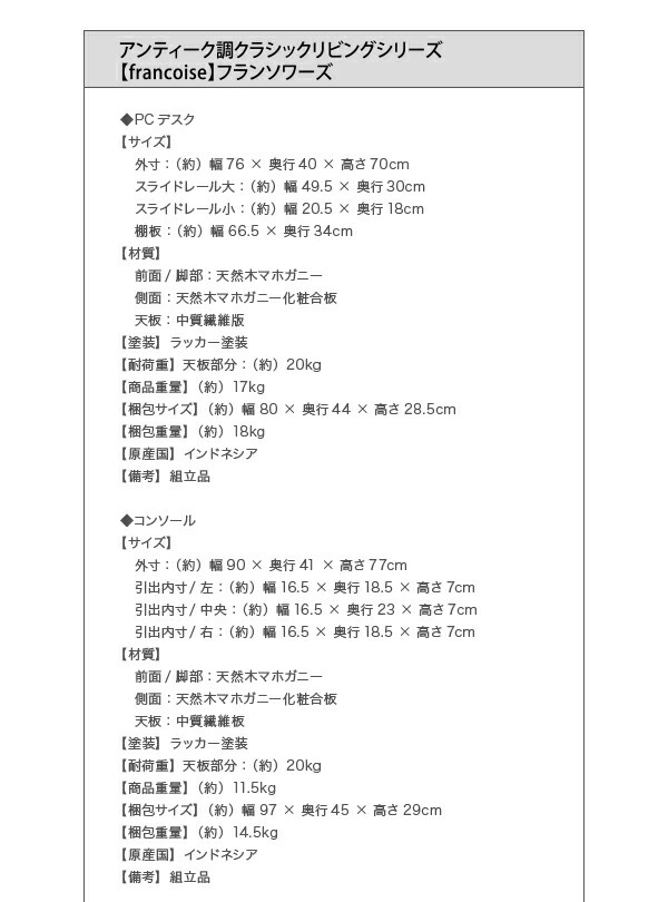 テイストファニチャー(収納シリーズ) アンティーク調クラシックリビングシリーズ FAX台