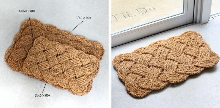 縄を編み込んだようなデザインのエントランスマット。