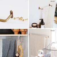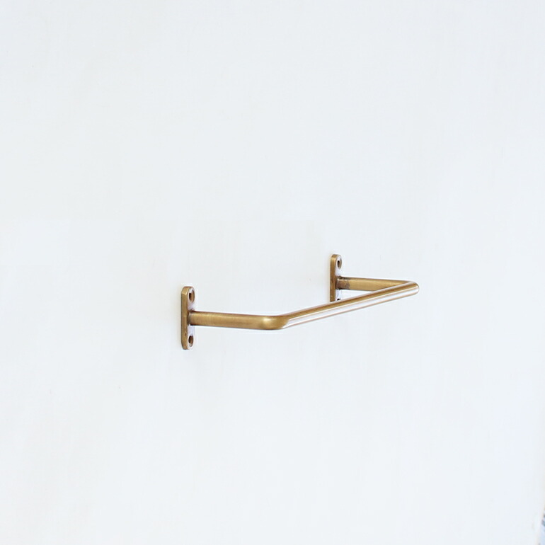 ごくごくシンプルな真鍮製のタオルバー。少しくすんだ真鍮の色合いが空間によく溶け込みます。 生活感が出がちな小さな部分もこだわりのものに変えればインテリアの完成度がぐっと高まります。 設置はネジで留めるだけなのでDIY初心者の方にも手軽に挑戦できますよ。 Sサイズはフェイスタオルを半分にして掛けるのに丁度よいサイズ感。お手洗いや洗面台横などの小さなスペースにおすすめです。 壁に垂直に取り付けるのも良いですが、棚板やテーブル天板の下側に付けると空間を有効活用できます。 タオルハンガーとしてはもちろん、S字フック等と組み合わせてツールハンガーとして使用するなど、アイデア次第で用途が広がるアイテムです。