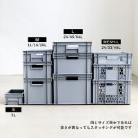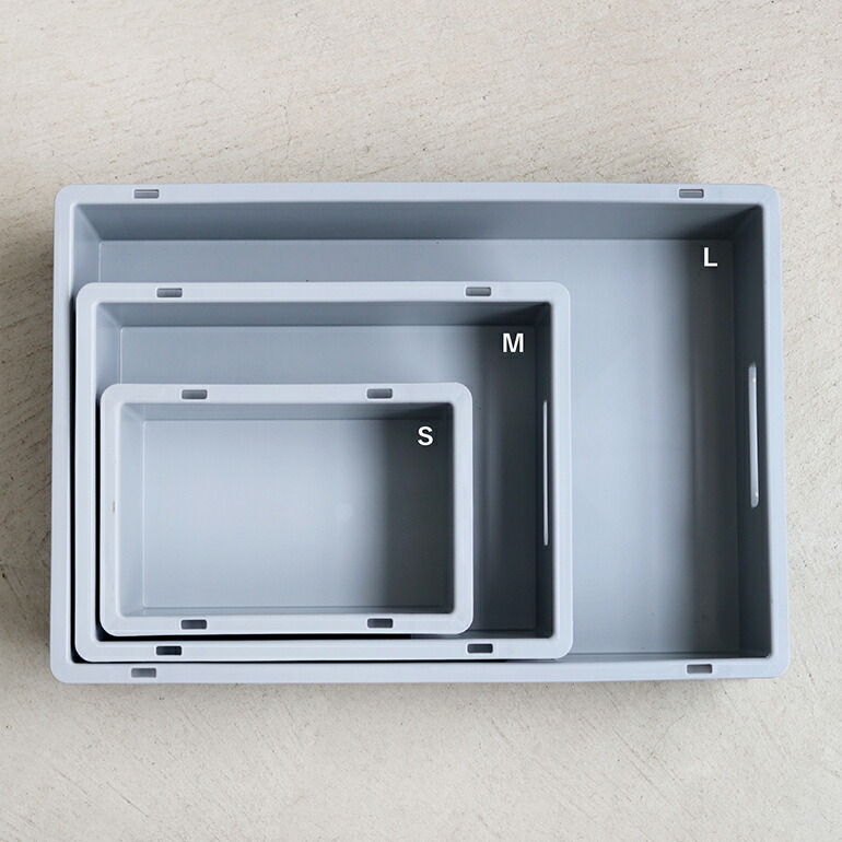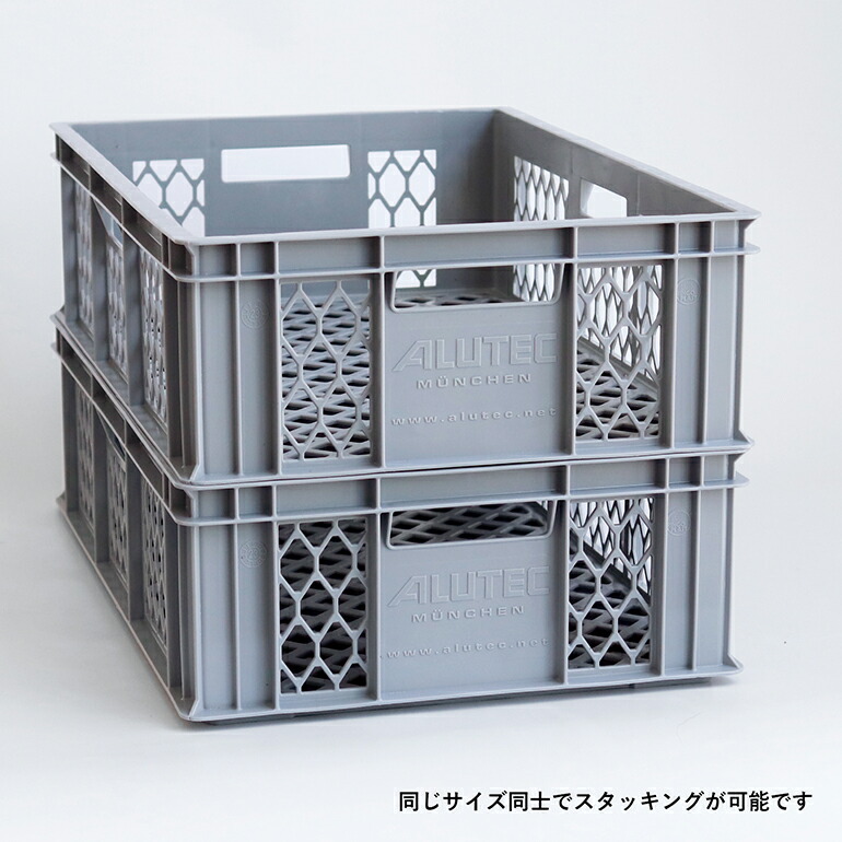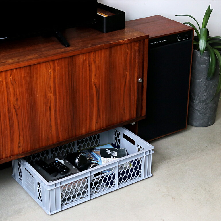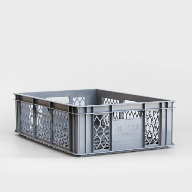 ドイツ製のプラスチックコンテナ。 ヨーロッパで物流用に使用されている軽くて丈夫なコンテナで、一つあると何かと便利なアイテムです。 スタッキングが可能なため、縦に積み上げての収納にもおすすめ。 メッシュのボックスは軽量なので、中に重いものを入れても持ち運びが容易ですよ。 中が見える点も便利なポイント。