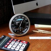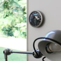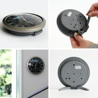 スタイリッシュなアナログ サーモハイグロメーター。 上で湿度、下で温度を計測できます。 スタンド付でデスク周りやキャビネットの上のちょっとしたスペースに。 また、裏面に引掛け穴がありますので、壁掛けとしてもご使用いただけます。 電池不要なところも嬉しいポイント。 デザイン性が高くシンプルなためどんなインテリアにも馴染んでくれます。