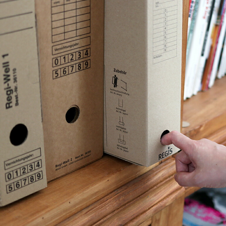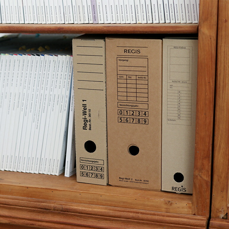 REGISはドイツ・デュイスブルグに1901年設立されたファイリング、アーカイブ用品や事務用品のトップメーカー。こちらは定番の薄手のボール紙でできた収納ボックスシリーズです。縦横置き両方に対応しており、引き出し用のフィンガーホールもついています。書類の整理整頓にもぴったりです。こちらはA4サイズがぴったり入る「フォールディングボックス2」。海外らしいプリントがなされており、棚などに並べた時の見た目もスッキリ。サイズ違いの型もご用意していますよ。■ 「フォールディングボックス 1」 はこちら■ 「フィックスボックス」 はこちら