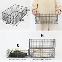 マットなスチールのワイヤーで作られた雰囲気の良いシューズボックス。 落ち着いた佇まいで、独特の存在感をまとっています。 ワイヤー式のためスタッキングしても圧迫感がなく、収納した靴が見えるのもうれしいポイント。 こちらのMサイズはメンズシューズなどにおすすめです。 またレディースシューズなどにお勧めのSサイズもございます。 つかみやすくガシガシ使えますし、軽くて積み重ねられるので靴以外の収納にも優秀。 水周りやキッチン、リビングなどいろいろな場所で活躍してくれそうです。 1個からの販売ですのでお好きな数量をお求め頂けます。