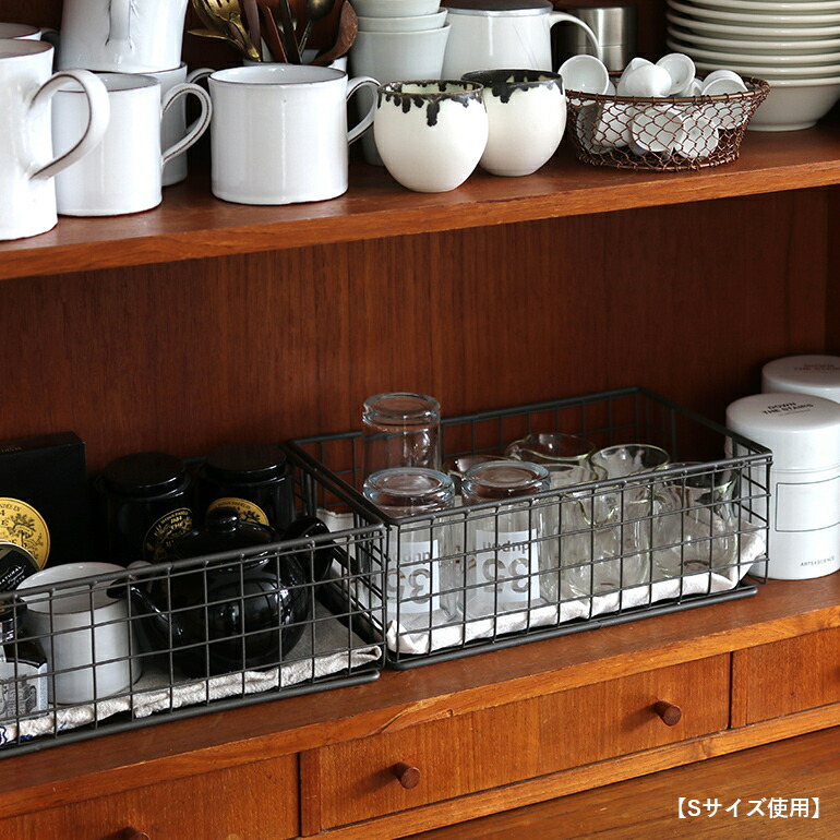 食品や食器類の整理に缶詰、ジャムなどのビン類、根菜やフルーツ、レトルト食品やお菓子などのストック収納に大変便利です。 また、かさばりがちな食器やグラスの置き場所としてもおすすめです。 【写真はSサイズ使用しています。】