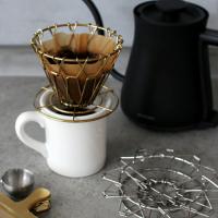折りたたみ可能なコーヒードリッパー。 ステンレス製のワイヤーで形成されたシンプルなフォルムが魅力的。 他にはない洗練されたデザインが、コーヒーギーグの所有欲を満たしてくれるアイテムです。 こちらは、約300mlのコーヒー(小さめのカップなら2杯、マグカップなら1杯分)の抽出に最適の大きさ。 ドリッパーとフィルターの接地面積が少ないため、安定した抽出ができるのもうれしい設計。 (※使用するペーパーフィルターは、平底のウェーブ型か、円錐形の1-4杯用がおすすめです。) また、ドリッパーの底面もワイヤー状になっているので抽出量が確認しやすく、 マグカップにコーヒーを直接抽出したい時にも重宝します。 コンパクトに折り畳んで収納できるので、持ち運びが容易なのもポイント。 オフィスやアウトドアシーンなど、あらゆる場面で淹れたてのコーヒーを楽しみたい方にも 大変おすすめのコーヒードリッパーです。 お気に入りの抽出器具があれば、コーヒーを淹れるといった日常の時間も心踊る時間に感じられそうですね。