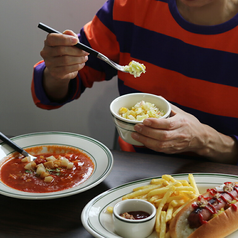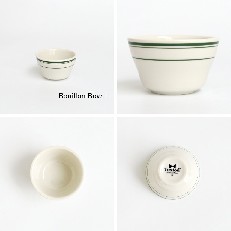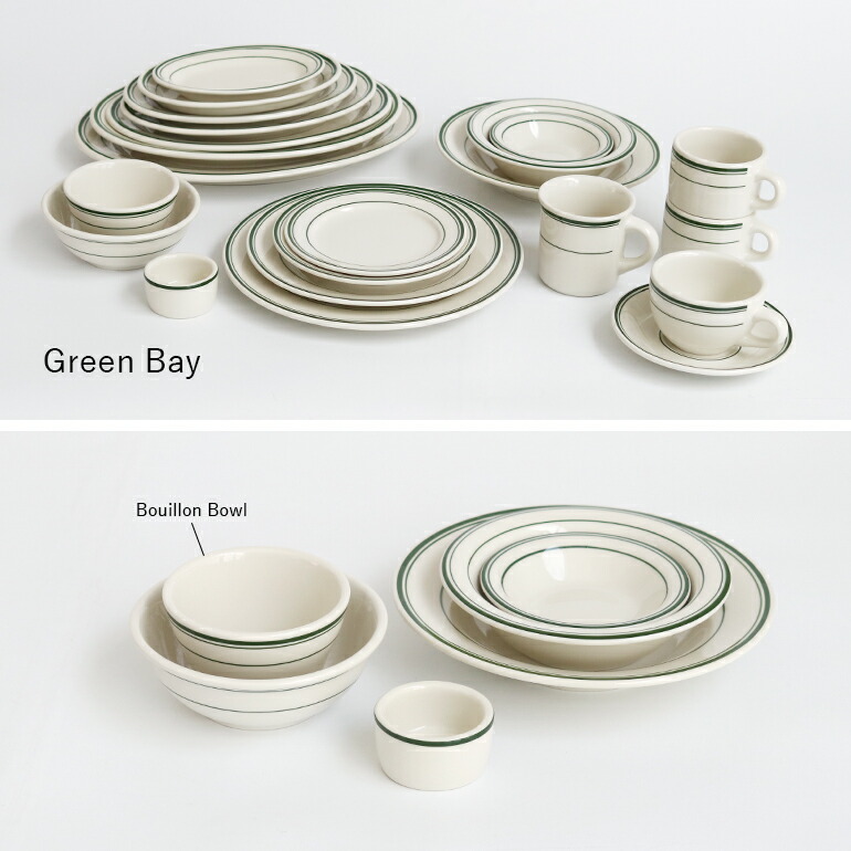 アメリカのダイナーやホテルなどで広く使用されている業務用テーブルウェアのブランド“Tuxton”(タクストン)。 古き良きアメリカンダイナーを思わせる、ぽってりとしたフォルムが魅力。 業務用食器ならではの頑丈な作りで、普段使いの食器としても大活躍してくれます。 こちらは、クリーミーなオフホワイトのボディにグリーンのラインが映える“Green Bay”シリーズ。 ビビッドなカラーがテーブルに彩りを添えてくれ、どんな料理もより美味しそうに引き立ててくれますよ。