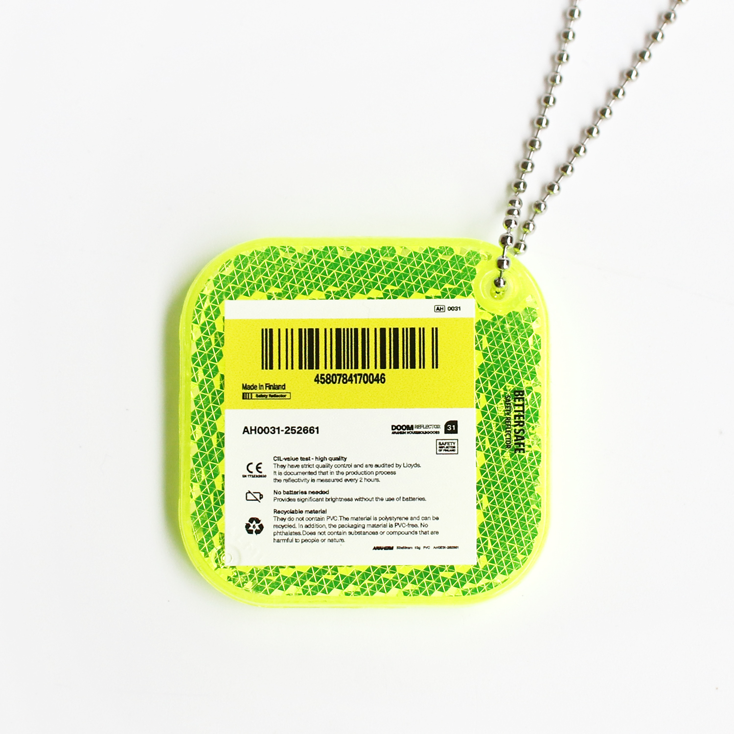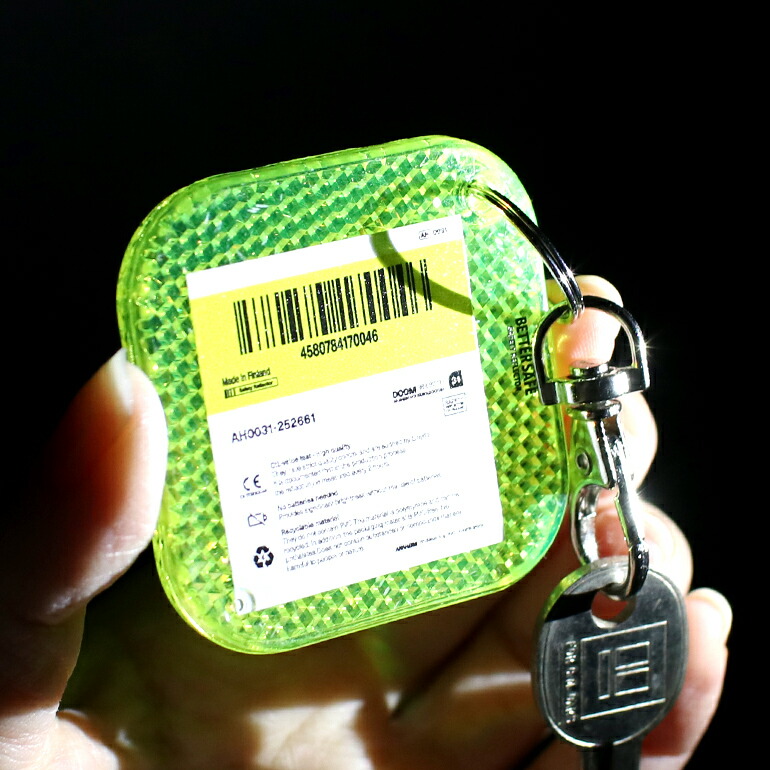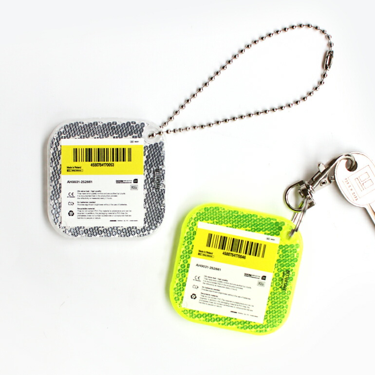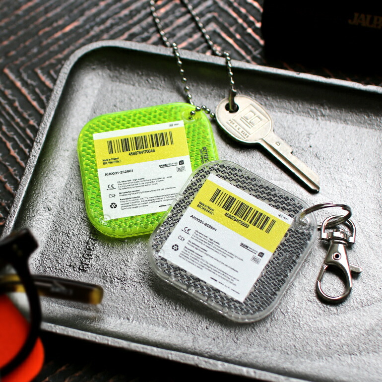 機能性とデザイン性に優れたリフレクター(反射板)キーホルダー。 一般的なリフレクターの2倍の反射性能があり、車のヘッドライトなどの光を反射して暗い夜道でもしっかりとドライバーに存在を知らせてくれます。 こちらは、冬の日照時間が短く終日薄暗いことでも知られるフィンランド製のアイテム。 現地では「もっとも安価な生命保険」として、安全を守るためにお子さまから年配の方まで幅広く使われています。 素材には、軽量でリサイクル可能な素材が採用されています。 バーコードをデザインに取り入れた ANAheimらしい遊び心のあるパターンも魅力。 キーホルダーのように、バッグや自転車に取り付けてもおしゃれです。 安全性を高めてくれるだけでなく、ファッションツールとして活躍してくれるのもうれしいですね。