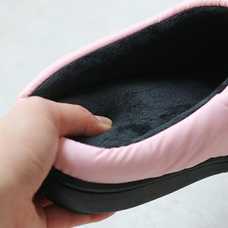 まるでダウンのような暖かさで素足を包み込んでくれる『ORIGINALS F-LINE』。 4層構造のインソールが足全体にしっかりとフィットし、まるで雲の上を歩いているような履き心地が魅力。 足が直接触れる部分はふわふわの起毛素材になっていて、冬でも素足で快適に過ごせます。 冷え込む時期のルームシューズにも大変おすすめのアイテムです。 アッパー生地にはテフロン加工が施された撥水素材を採用。 多少の雨なら弾いてくれ、外歩き用としても重宝します。 近所へのお買い物時やアウトドアシーンなど、リラックスして過ごしたい時にもぴったり。 スリッパのように気楽に履けるのに、ふっくら暖かで極上の履き心地。 4層のインソールは家でのリラックス以上の気持ち良さをもたらしてくれますよ。