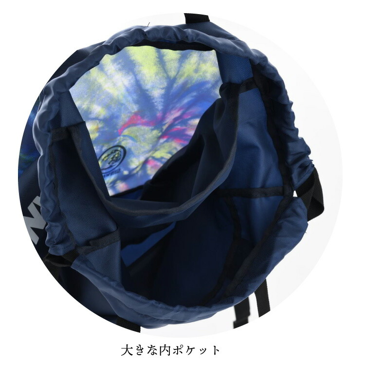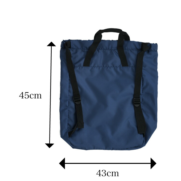 スタッフよりちょっと大きめたっぷり入るナップサック。巾着タイプでリュックサックになります。部分メッシュで蒸れにくい。