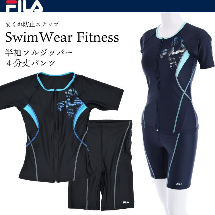 フィットネス水着 レディース 水着 フィットネス 7号 9号 11号 13号 セパレート フィラ FILA めくれ防止 4分丈スパッツ 半袖