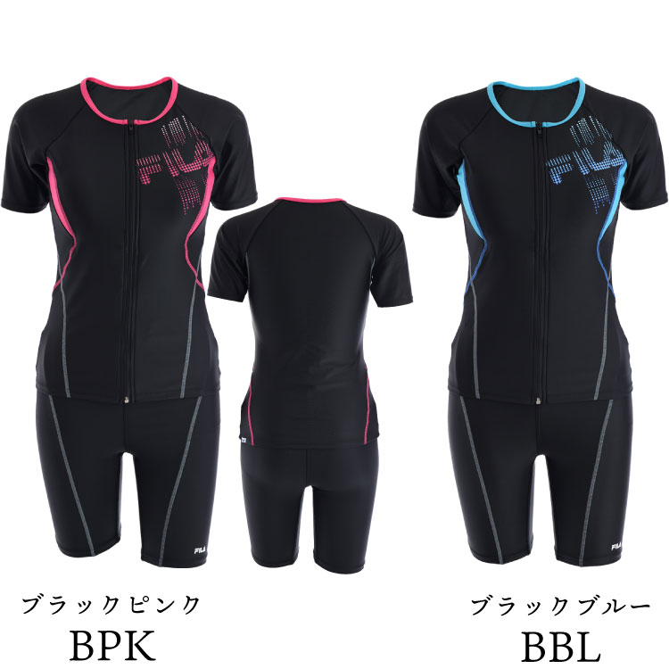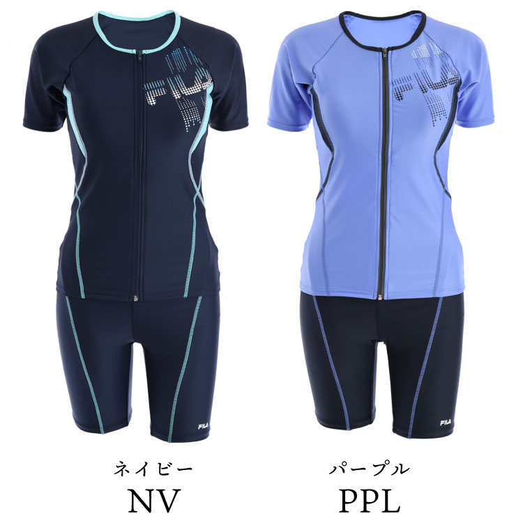 FILA フィットネス水着 レディース グラデーションロゴ半袖フルジップ セパレート めくれ防止 フィラ